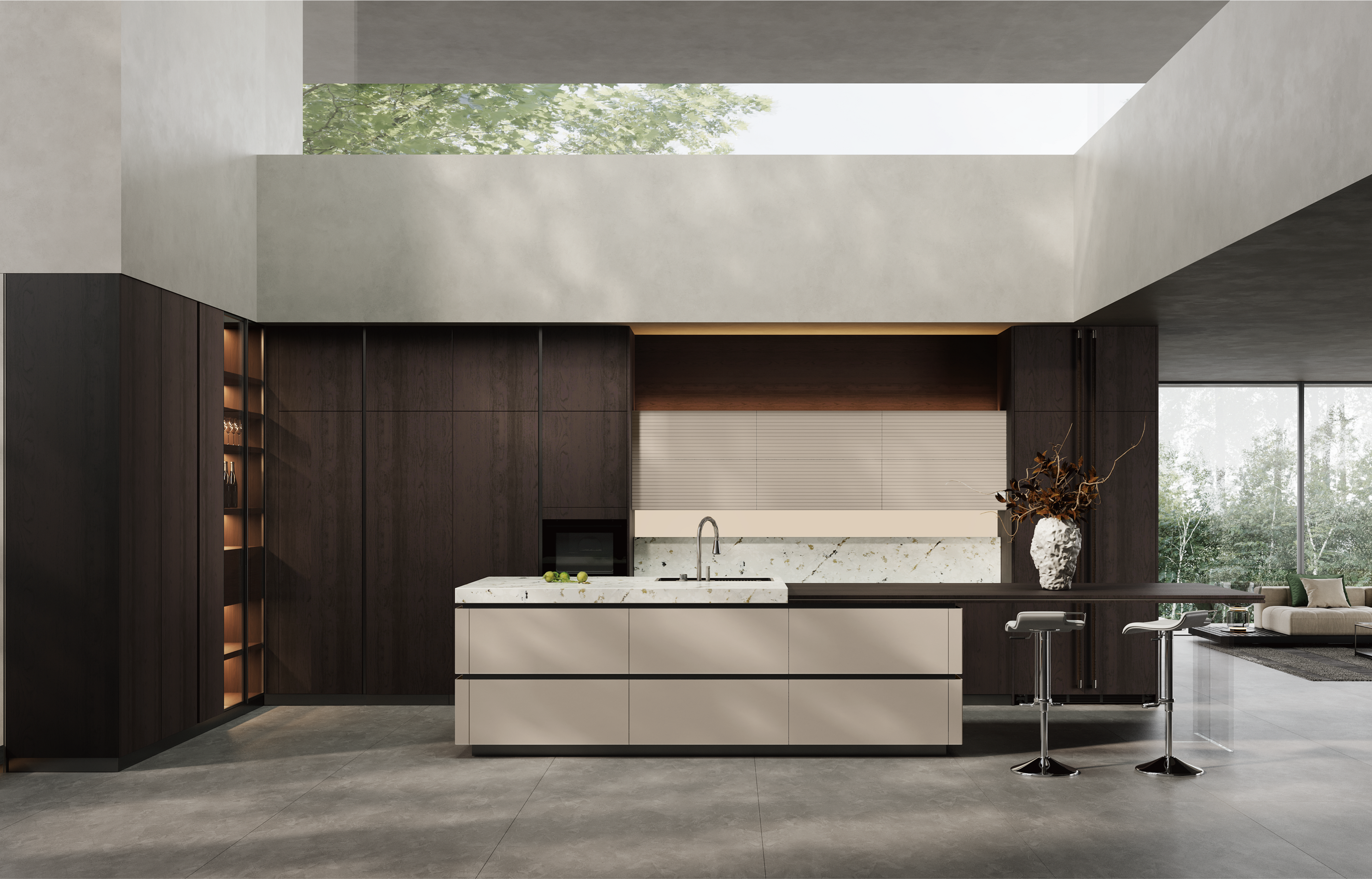 通过百乐达斯城厨柜量体裁柜,定制出适合主厨下厨的烹饪区和洗涤区的舒适高度。